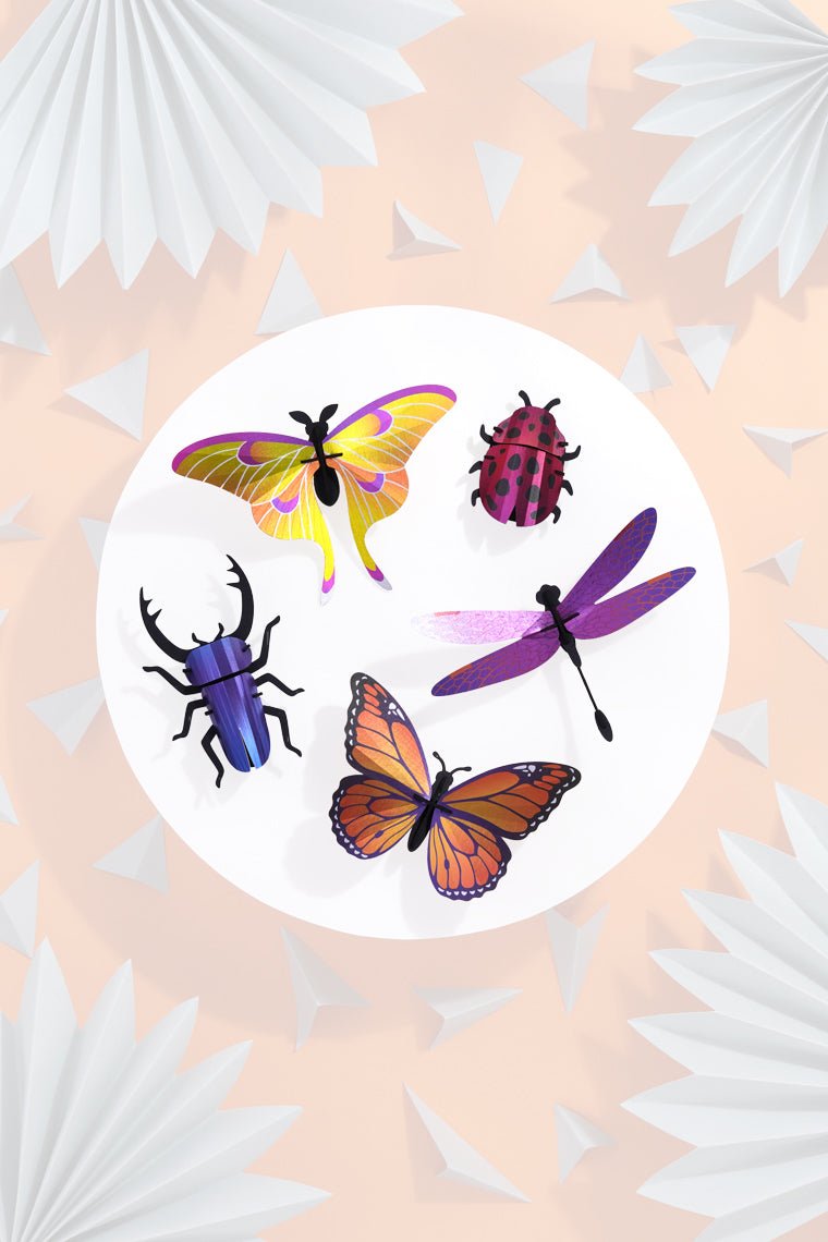 Après le succès du Ensemble de Coléoptères, nous vous présentons fièrement l’ensemble d’insectes mixtes! Vous pouvez désormais redonner vie aux insectes dans votre intérieur d’une manière très respectueuse des animaux. Profitez de cette collection de puzzles d’insectes 3D faciles à construire ! L’ensemble contient 5 coléoptères à assembler. Construisez ces créatures brillantes pour créer votre propre boîte de collecte d’insectes ! Sentez-vous récompensé pour avoir créé une si belle décoration d’intérieur en papier.